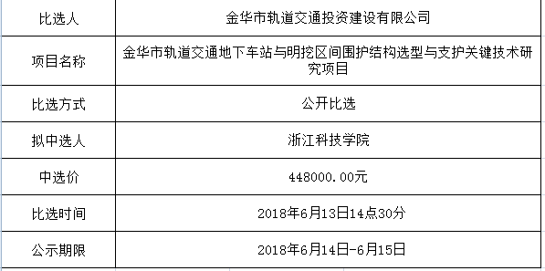 金華市金義東軌道交通有限公司運營環(huán)境長效管理系統(tǒng)項目中標候選人公示