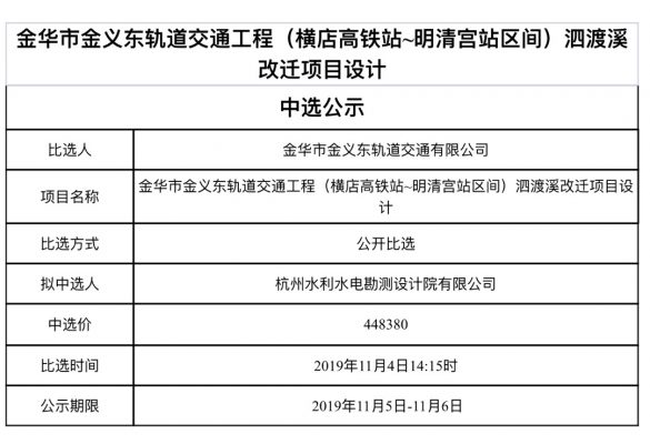 金華市金義東軌道交通有限公司運營環(huán)境長效管理系統(tǒng)項目中標候選人公示