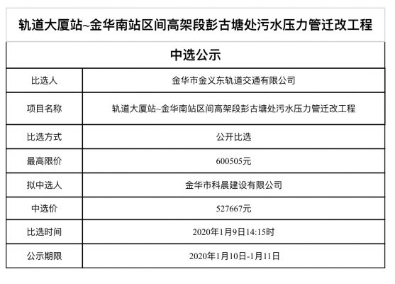 金華市金義東軌道交通有限公司運(yùn)營環(huán)境長效管理系統(tǒng)項(xiàng)目中標(biāo)候選人公示