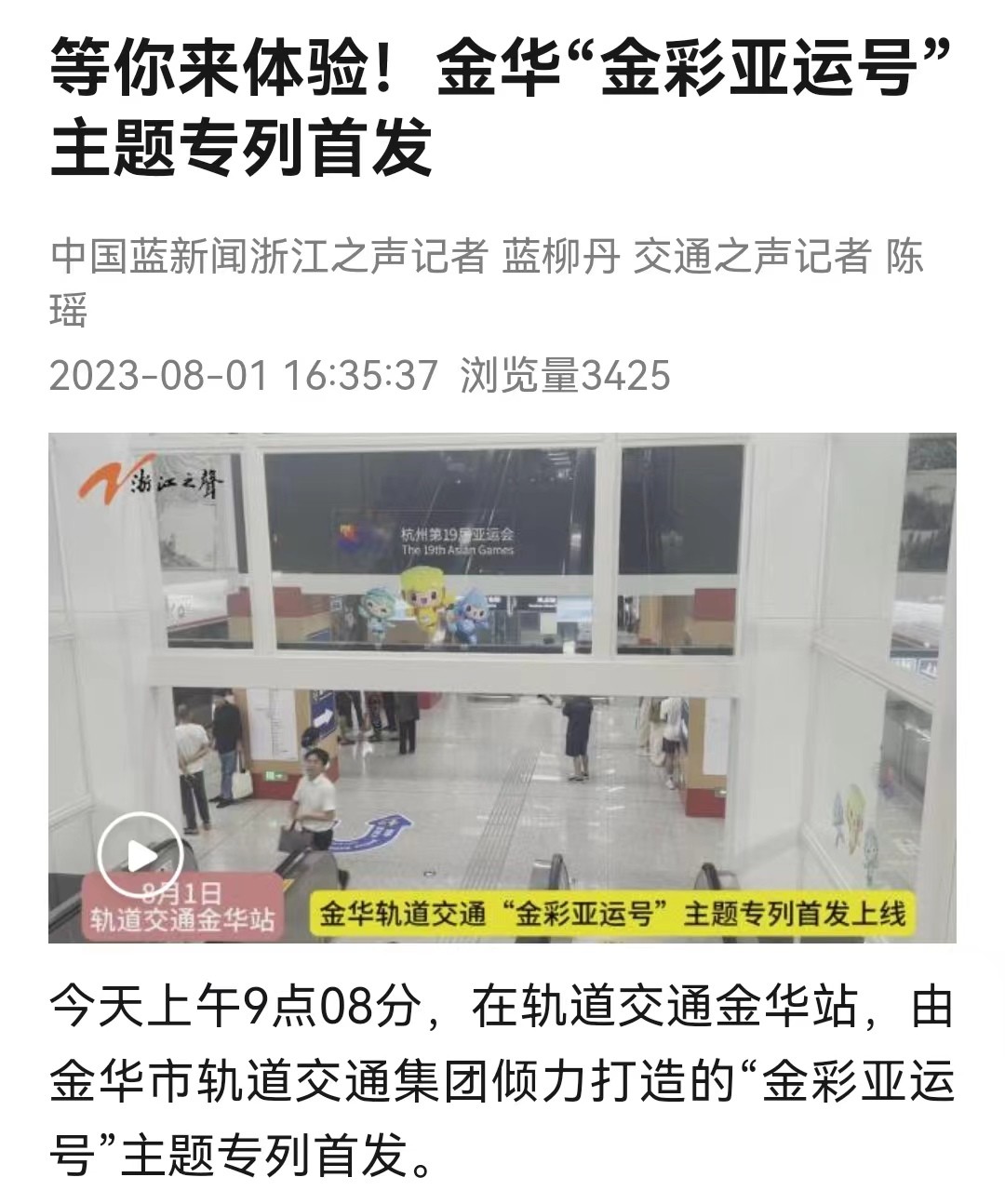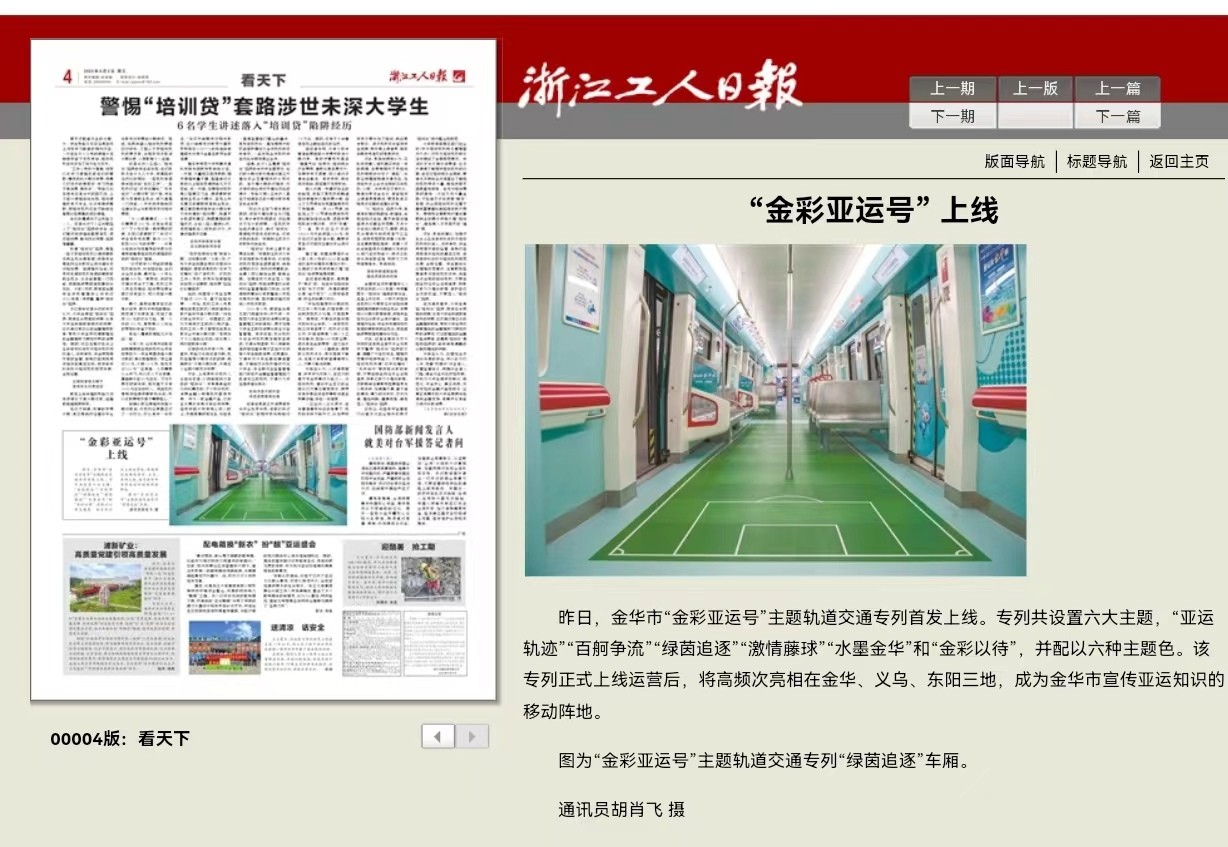8月1日上午9點(diǎn)08分,由市軌道交通集團(tuán)傾力打造的“金彩亞運(yùn)號(hào)”主題專列首發(fā)上線。身披醒目虹韻紫的“金彩亞運(yùn)號(hào)”主題專列一經(jīng)面世,就受到了社會(huì)各界的廣泛關(guān)注。